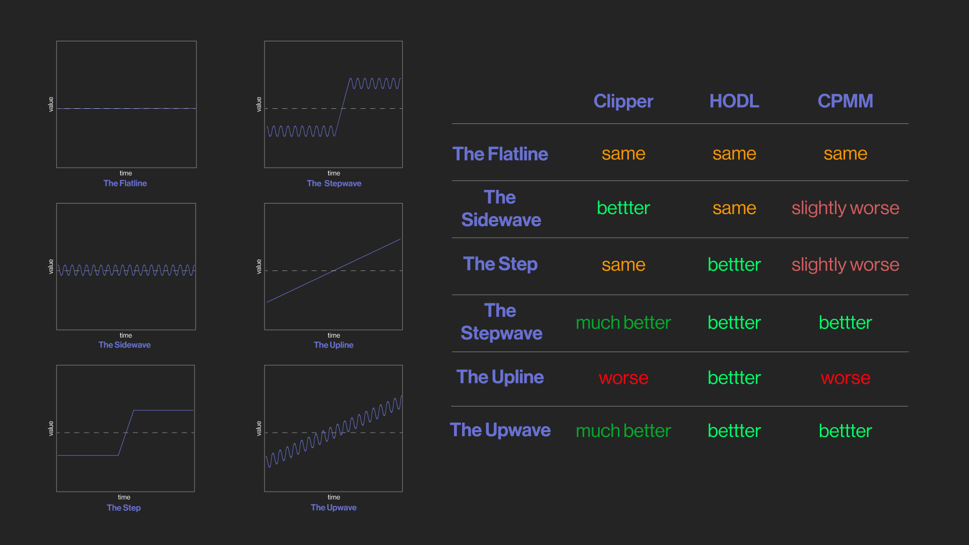 Clipper vs. CPMMs vs. HODLing